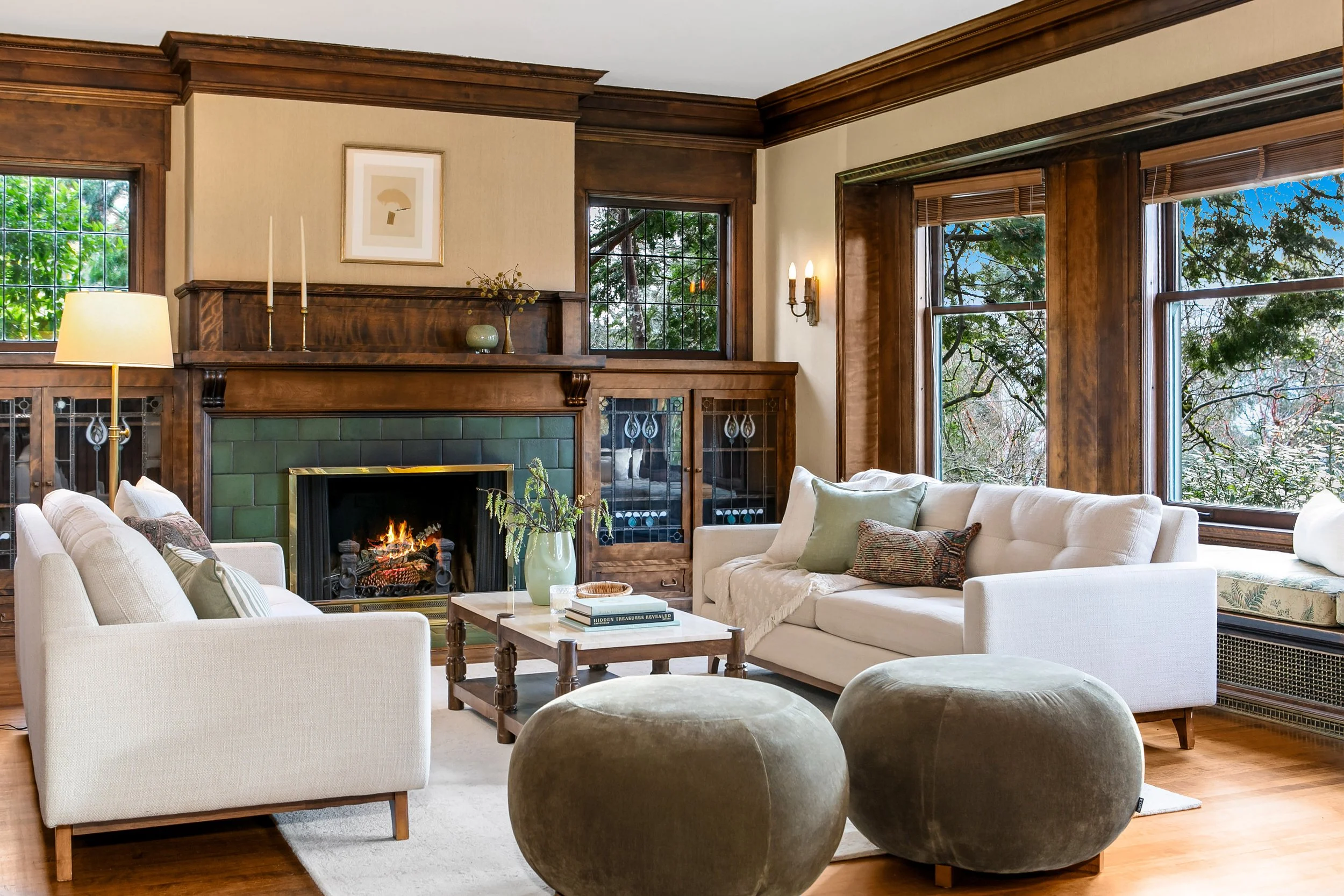 Graciously set in Capitol Hill’s storied Harvard-Belmont enclave, this grand 1906 Craftsman is both legacy estate and enduring residence. Set on an extraordinary 15,000-square-foot lot, it reflects an era when Seattle’s leading citizens built with vision, permanence, and artistry. Spanning three finished levels above grade, the home balances historic integrity with thoughtful modernization. Public rooms unfold in measured succession ~ formal, yet unforced. Original millwork, generous proportions, and divided-light windows define the interiors and affirm the home’s architectural pedigree, complemented by carefully integrated updates that support contemporary living. A JAS–renovated kitchen introduces refined precision, aligned with the structure’s historic material language. A light-filled two-story stairwell rises to a broad second-floor landing, leading to additional bedrooms, baths, and a private office. Along the north elevation, the primary suite spans east to west across three rooms and a full bath, capturing steady daylight and maintaining separation from the principal gathering spaces. The top level reveals an expansive former gymnasium reimagined as a family room, accompanied by guest quarters, a full bath, and storage. Elevated above the street, the expansive, mature grounds and layered plantings provide rare privacy and quiet command—an estate-scale presence seldom found within the city.